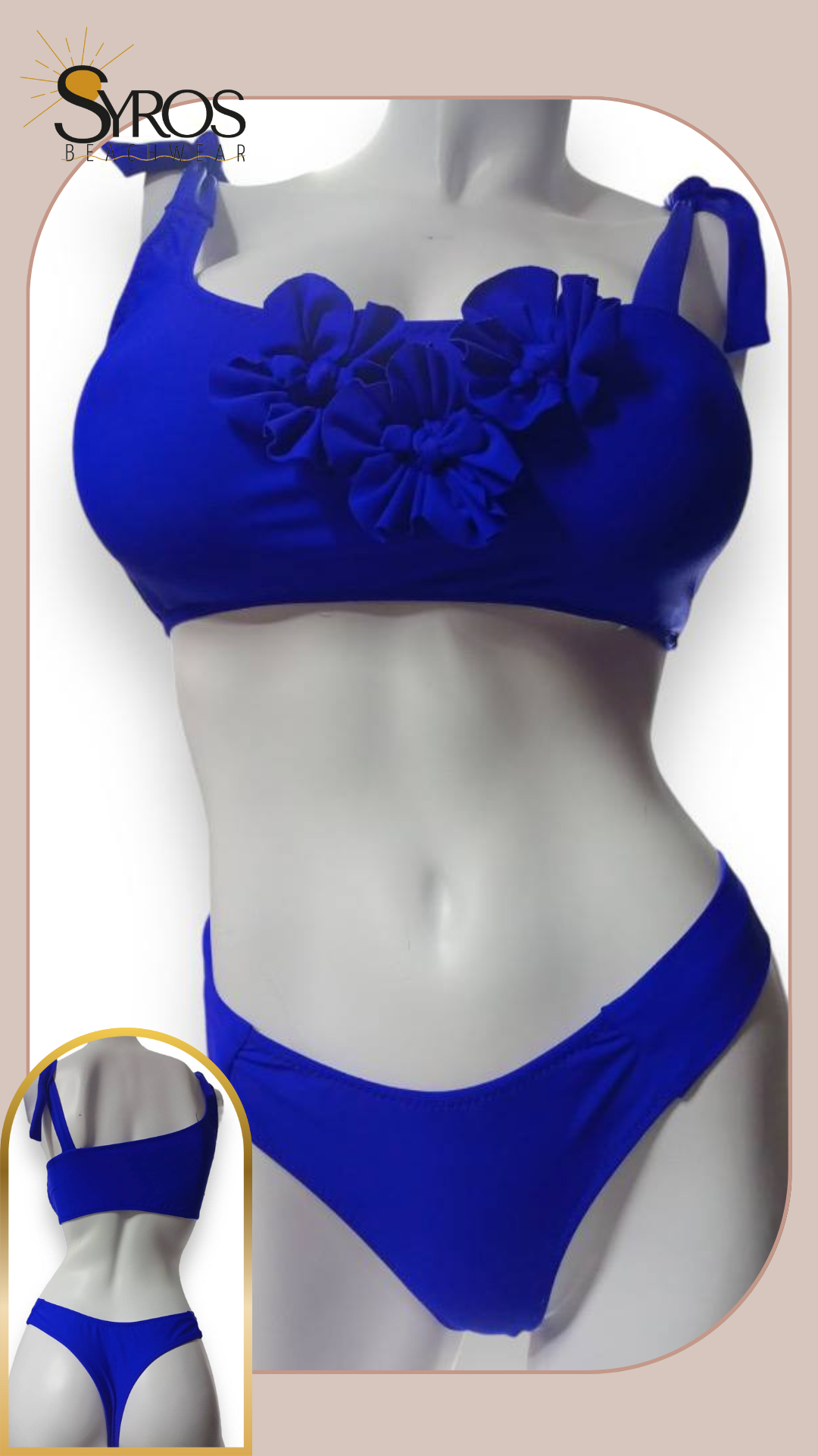 Bikini azul rey flores en top panty semihilo