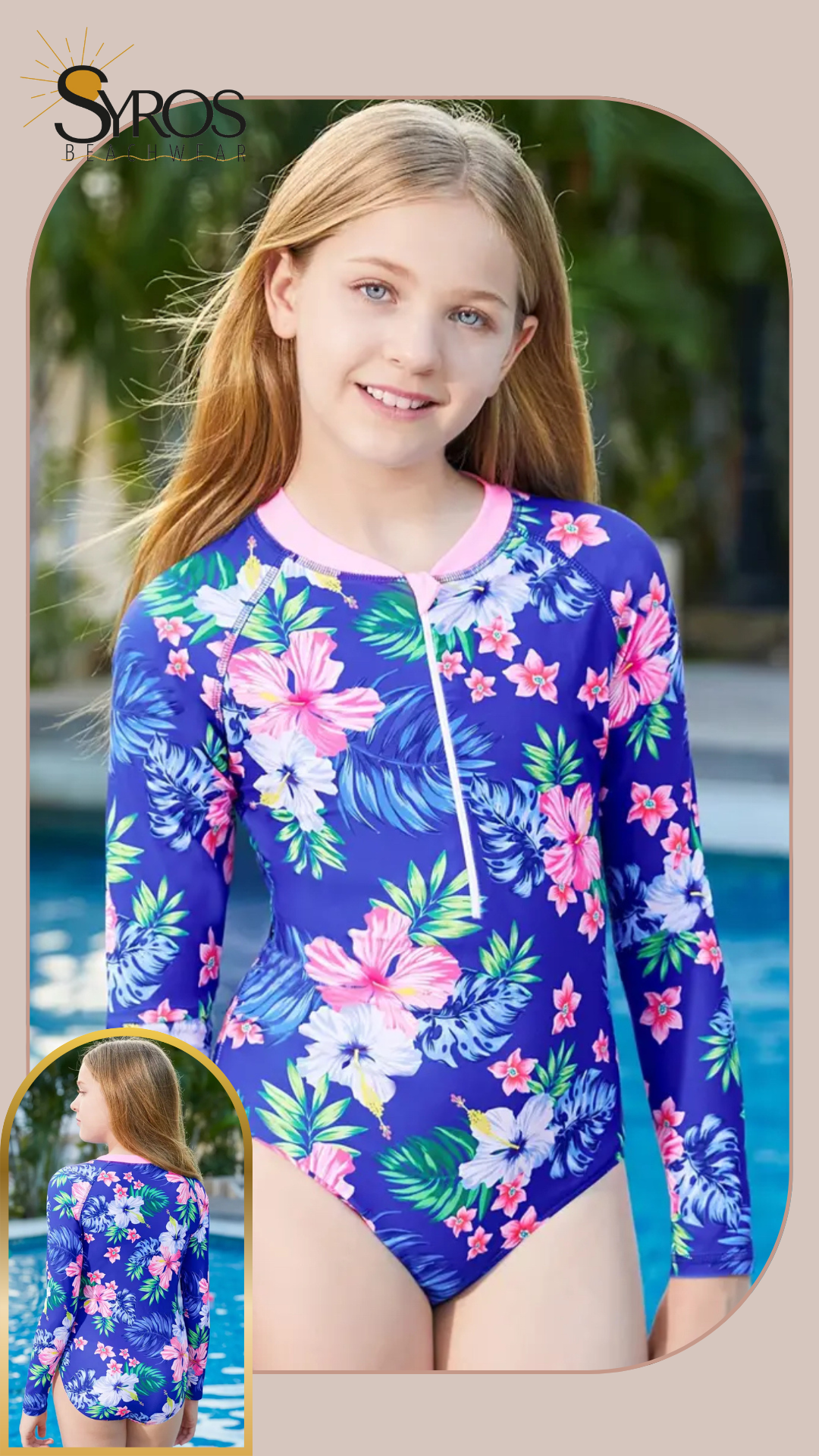 Entero manga larga estampado azul morado flores rosadas