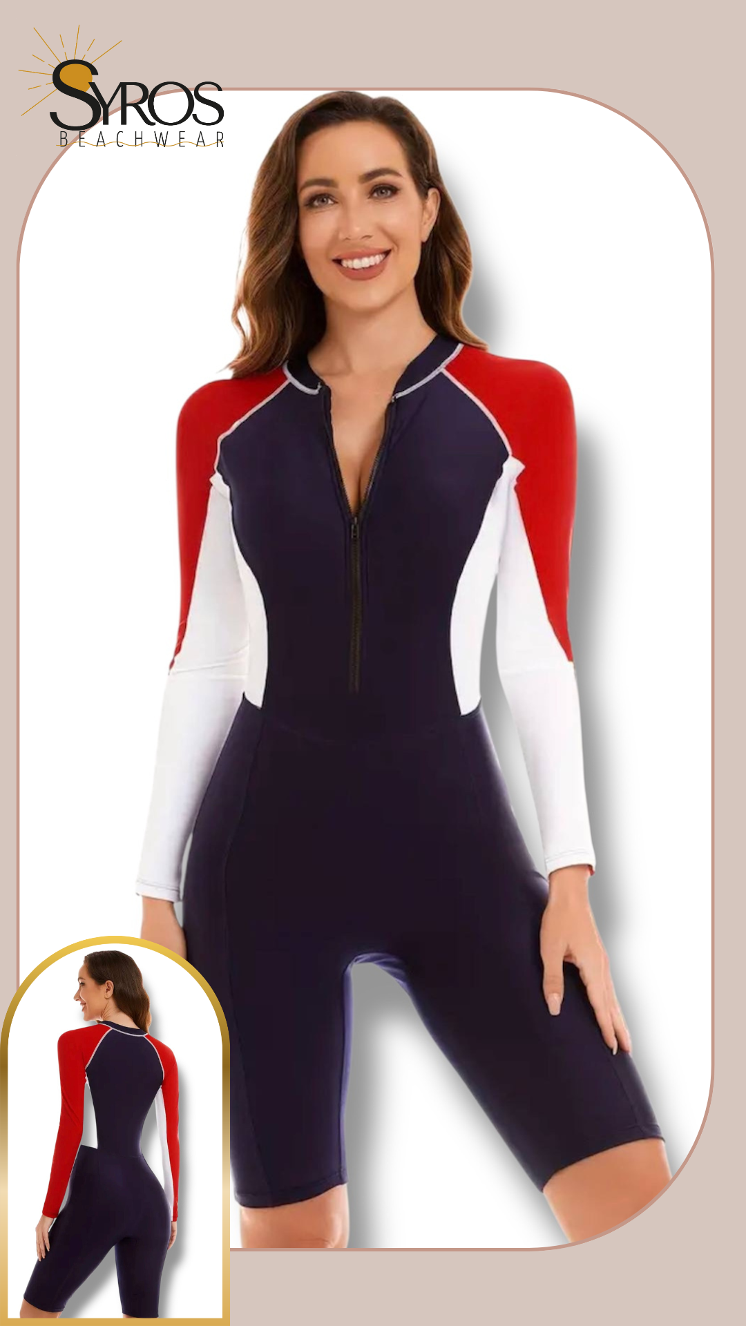 Entero manga larga short largo negro mangas y costado rojo y blanco