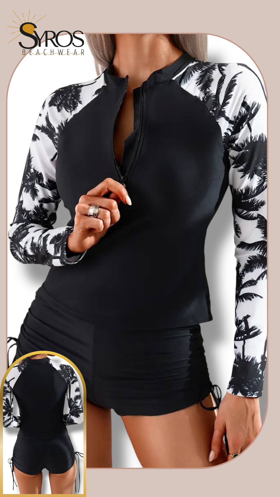 Tankini manga larga short negro con palmeras